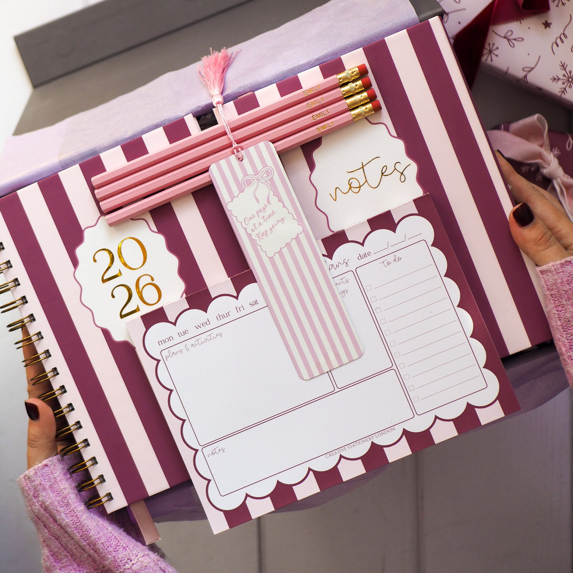• The Stationery Lover Complete Gift Set: Personalised planner + journal + notepad + pencils + bookmark